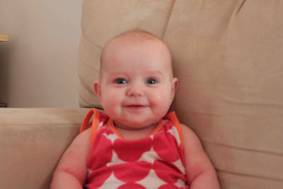 Would you just LOOK at that face??? ADORABLE!! Happy four months, little cutie!!