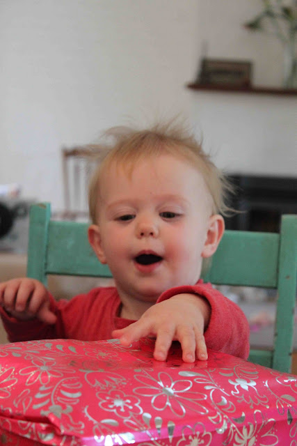 Harper got to open a few birthday presents from some family members on the weekend who won’t see her near her birthday. She was quite impressed with the whole process. The wrapping paper. The cards. The presents inside.