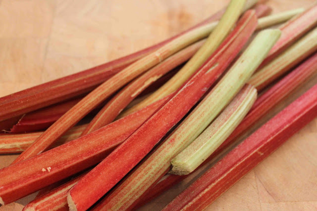 First I took some of the cut rhubarb out of MY OWN FREAKING GARDEN BIATCHES and placed it all Donna Hay like on my bench. Thusly: