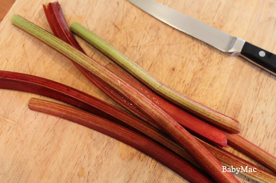 : I took the leaves off the rhubarb, washed and cut into 2 cm pieces