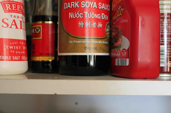 But dude, those sauces need to be in the fridge, STAT. It even says on Soy to refrigerate after opening. Weirdo.