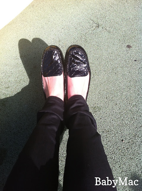 I got these little leather loafers which are a little middle aged Bowral seeing as they are Mock Croc AND patent leather but I am also a little bit in love with them. This is them, at the park this morning. They look a little sad don’t they?