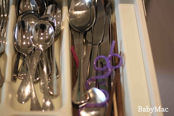 All our plastic spoons/forks for the toddlers are in a separate toddler drawer along with all their tiny plastic bowls and plates etc.